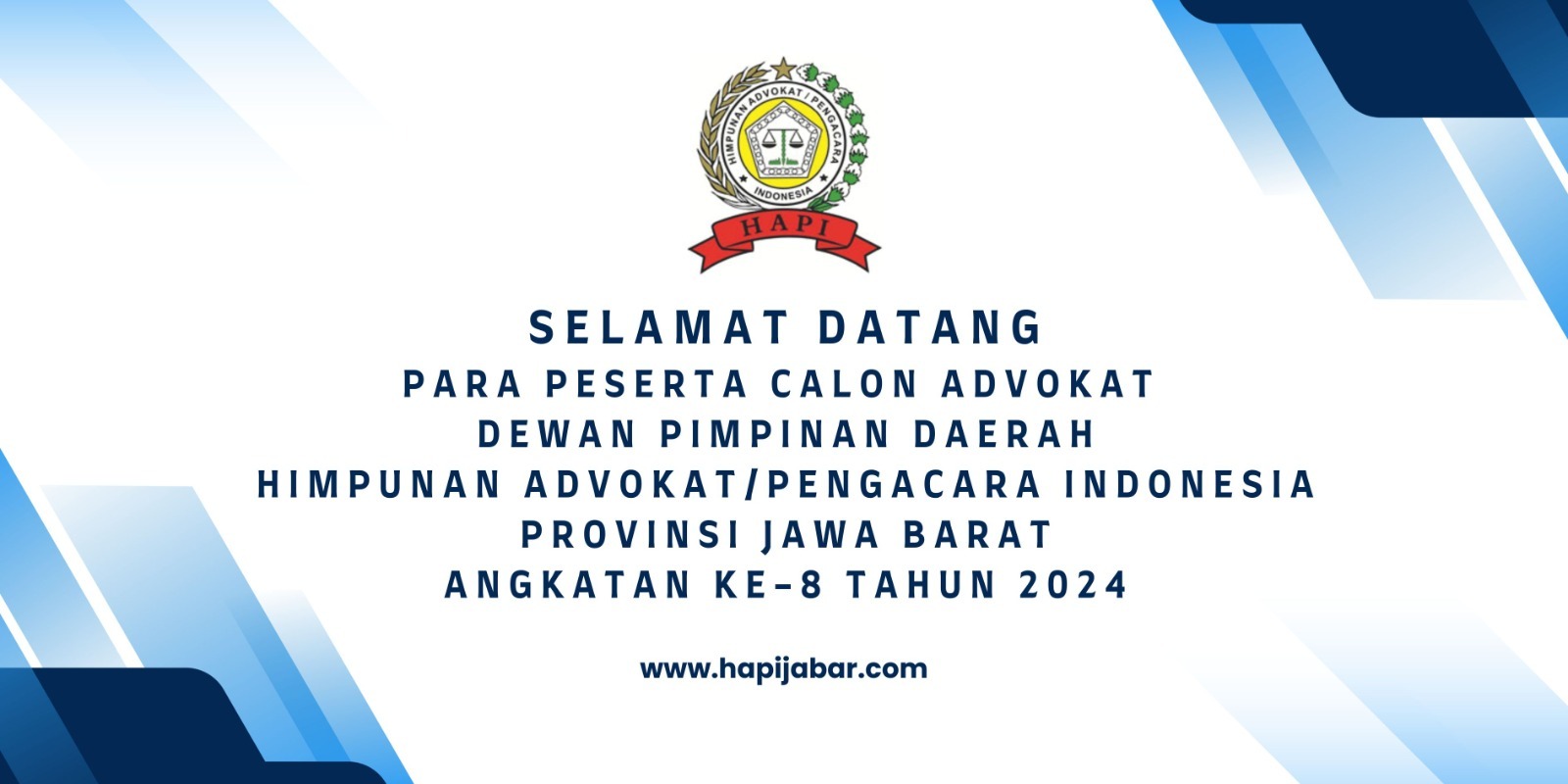 HAPIJABAR.COM, Bandung – Dewan Pimpinan Daerah Himpunan Advokat/Pengacara Indonesia (DPD HAPI) Jawa Barat akan melaksanakan prosesi sumpah advokat untuk Angkatan ke-8 pada Senin, 16 Desember 2024. Acara ini akan digelar di Pengadilan Tinggi Bandung, Jalan Cimuncang No. 21 D, Kota Bandung.