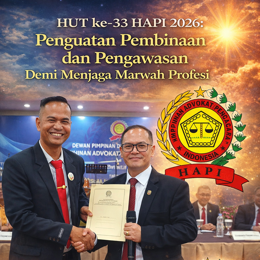 HUT ke-33 HAPI menjadi momentum konsolidasi internal untuk memastikan bahwa pembinaan dan pengawasan berjalan seimbang mendorong peningkatan kualitas sekaligus menjaga kehormatan profesi advokat di tengah dinamika penegakan hukum yang terus berkembang.