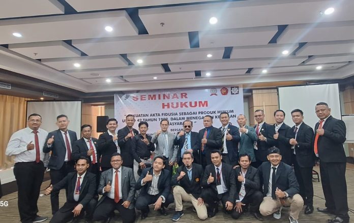 Sadar akan pentingnya memberikan pemahaman yang baik tentang Jaminan Fidusia ini kepada masyarakat, Dewan Pimpinan Cabang (DPC) Himpunan Advokat Pengacara Indonesia (HAPI) Kabupaten Karawang menggelar Seminar Hukum yang mengangkat tema ” Kekuatan Akta Fidusia Sebagai Produk Hukum UU No.42 tahun 1999, Dalam Menegakan Keadilan di Masyarakat”, bertempat di Hotel Brits, Telukjambe Timur, Karawang, Jawa Barat, Sabtu (15/7/2023). Puluhan peserta dari beragam profesi hadir dalam kegiatan seminar tersebut, diantaranya, anggota HAPI, mahasiswa, praktisi